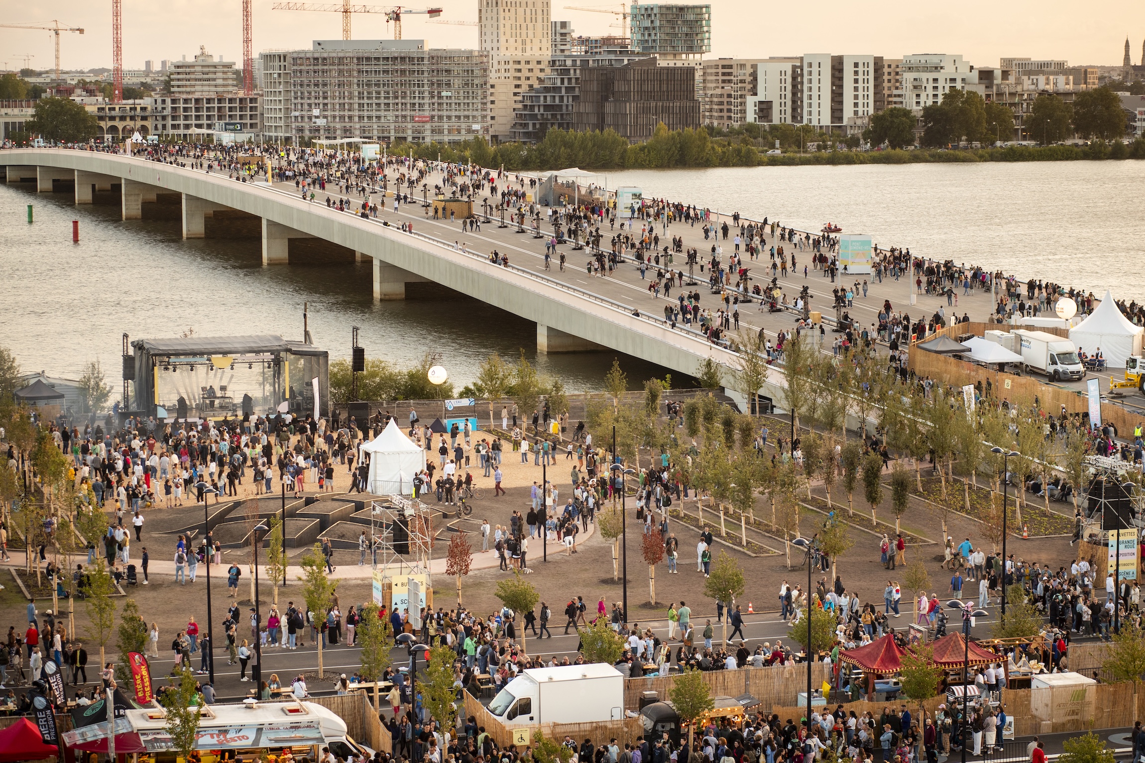 Conçu à la fois comme franchissement et espace de rencontre, ce pont Simone Veil est désormais un lieu privilégié d’événements au-dessus du fleuve, entre Bordeaux et ses voisins de Bègles et Floirac. Le jour de l’inauguration, des milliers de personnes en fête n’y ont pas seulement dansé bien plus à l’aise que sur le célèbre Pont d’Avignon, elles ont aussi démontré la validité du concept de son architecte hollandais, Rem Koolhaas, du bureau OMA de Rotterdam. Trait d’union entre les rives d’une zone au potentiel dynamique, l’ouvrage aux lignes fluides se prépare déjà à accueillir le tournage d’un concert filmé de Sandra Nkake, une chanteuse fétiche de Quincy Jones et sans doute aussi une installation du Musée d’Art Contemporain d’Aquitaine. “C’est cet éventail très riche de possibilités qui nous a permis de remporter le concours”, explique Gilles, qui a consacré une bonne part de sa vie, depuis 2012, à gérer la maîtrise d’œuvre de la construction de ce projet de 151 millions d’euros. Les coûts ? Maîtrisés, avec une facture finale 200.000 euros au-dessous du budget. “Ce n’est pas mal, bien sûr. Mais à Toulouse, au cours de la même période, on a réussi à boucler dans les délais le projet du Parc des Expositions, investissement de 320 millions, avec une économie bien plus substantielle, plusieurs millions d’euros dans ce cas.”